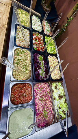 Ensaladas variadas, vegetales, salsas y acompañamientos fríos.